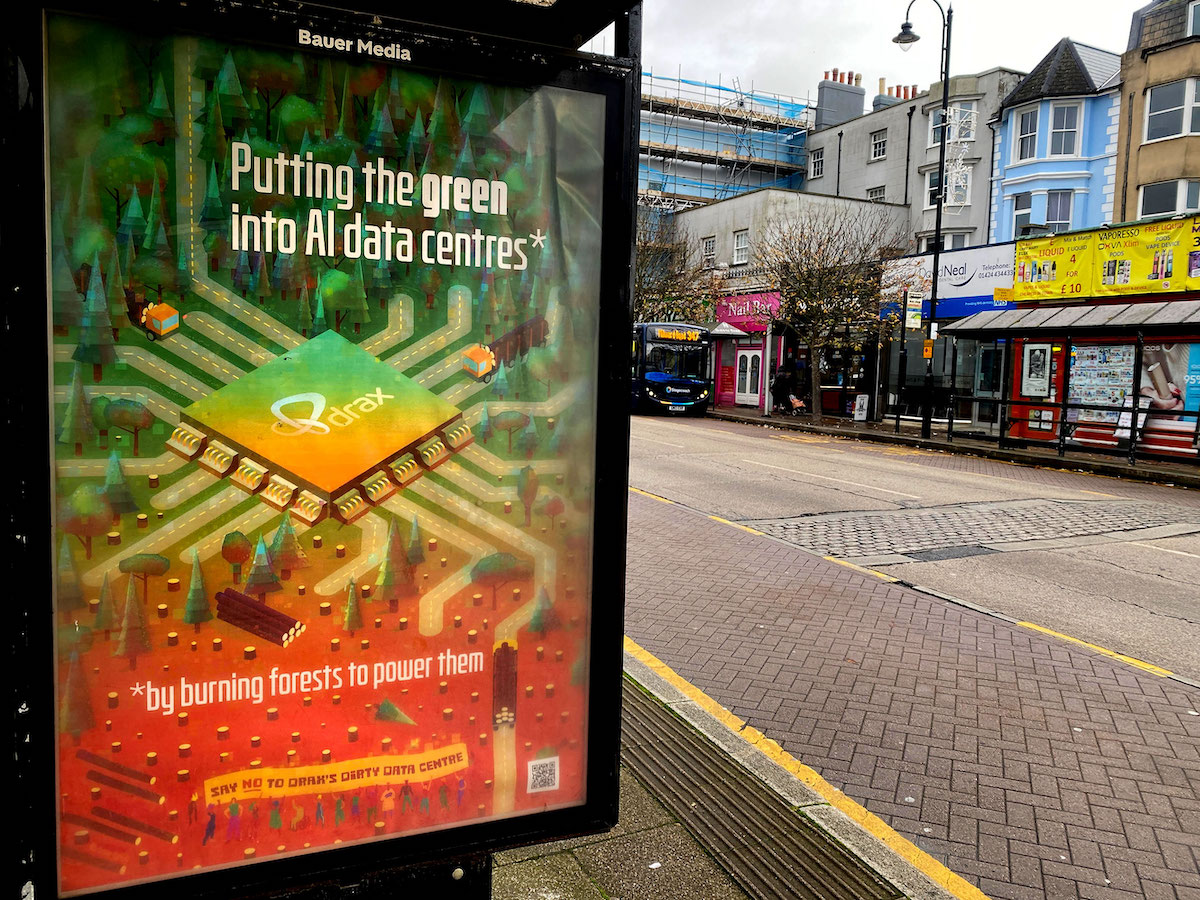 Artwork by Michelle Tylicki for Axe Drax & Stop Burning Trees Coalition. At DRAX we burn trees, but we wanna burn more -to power AI data centres!Invest your taxes (£2m/day!) in our state-of-the-art deforestation technology.Help us cut trees, eliminate wildlife, displace communities and create AI Slop! For your "renewable" energy,…