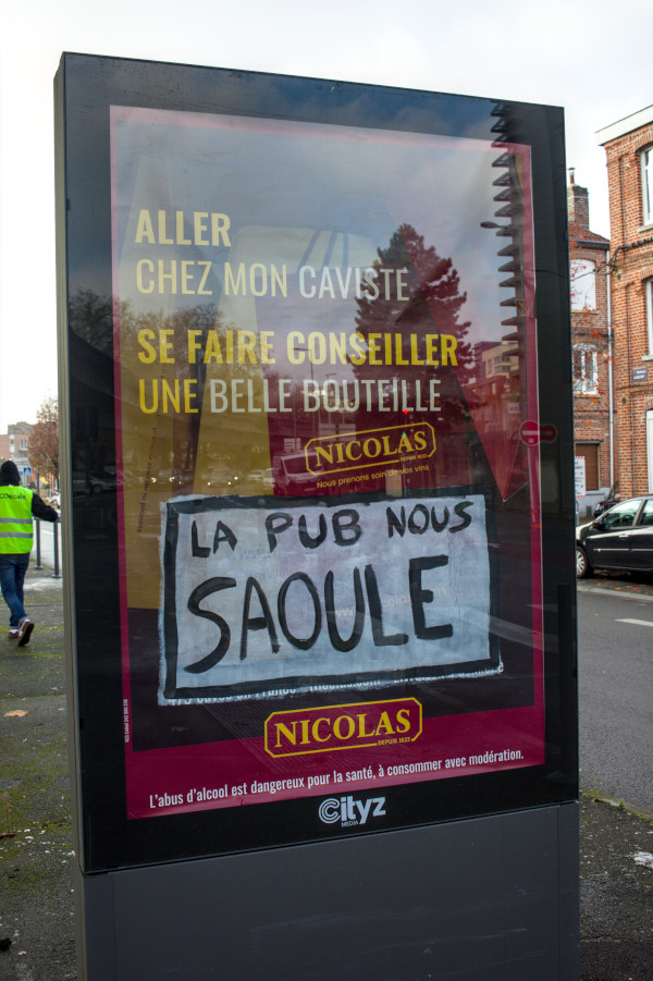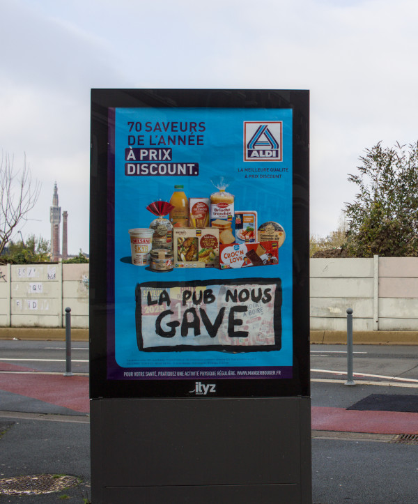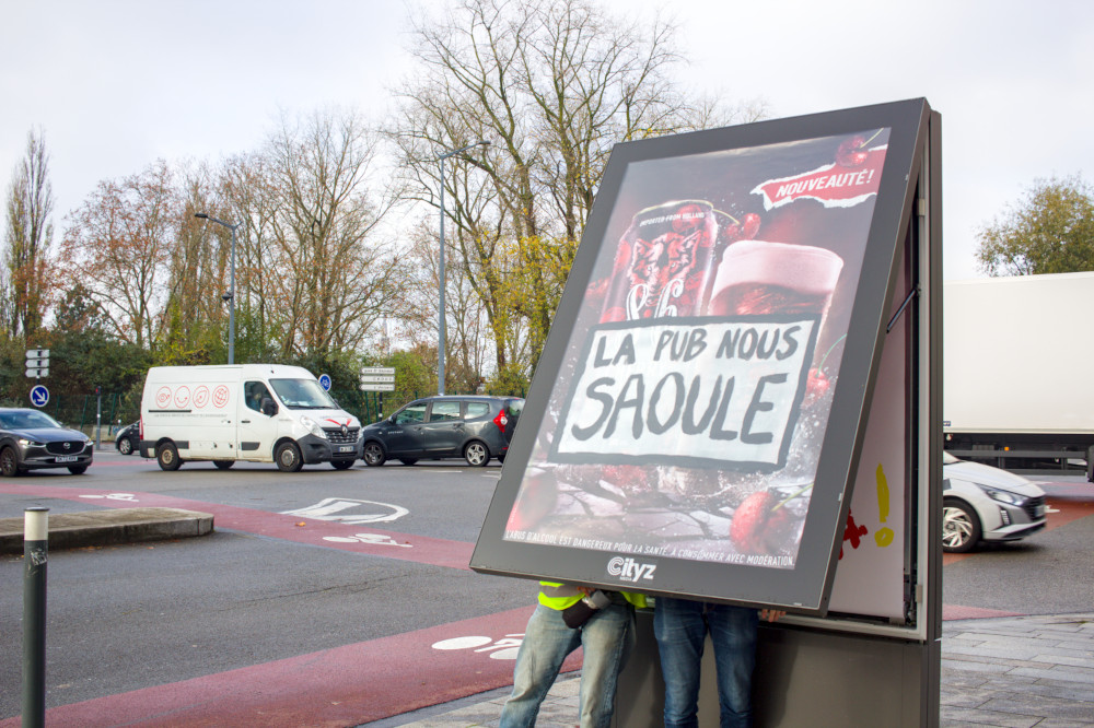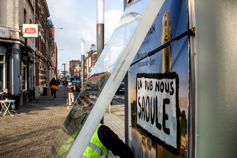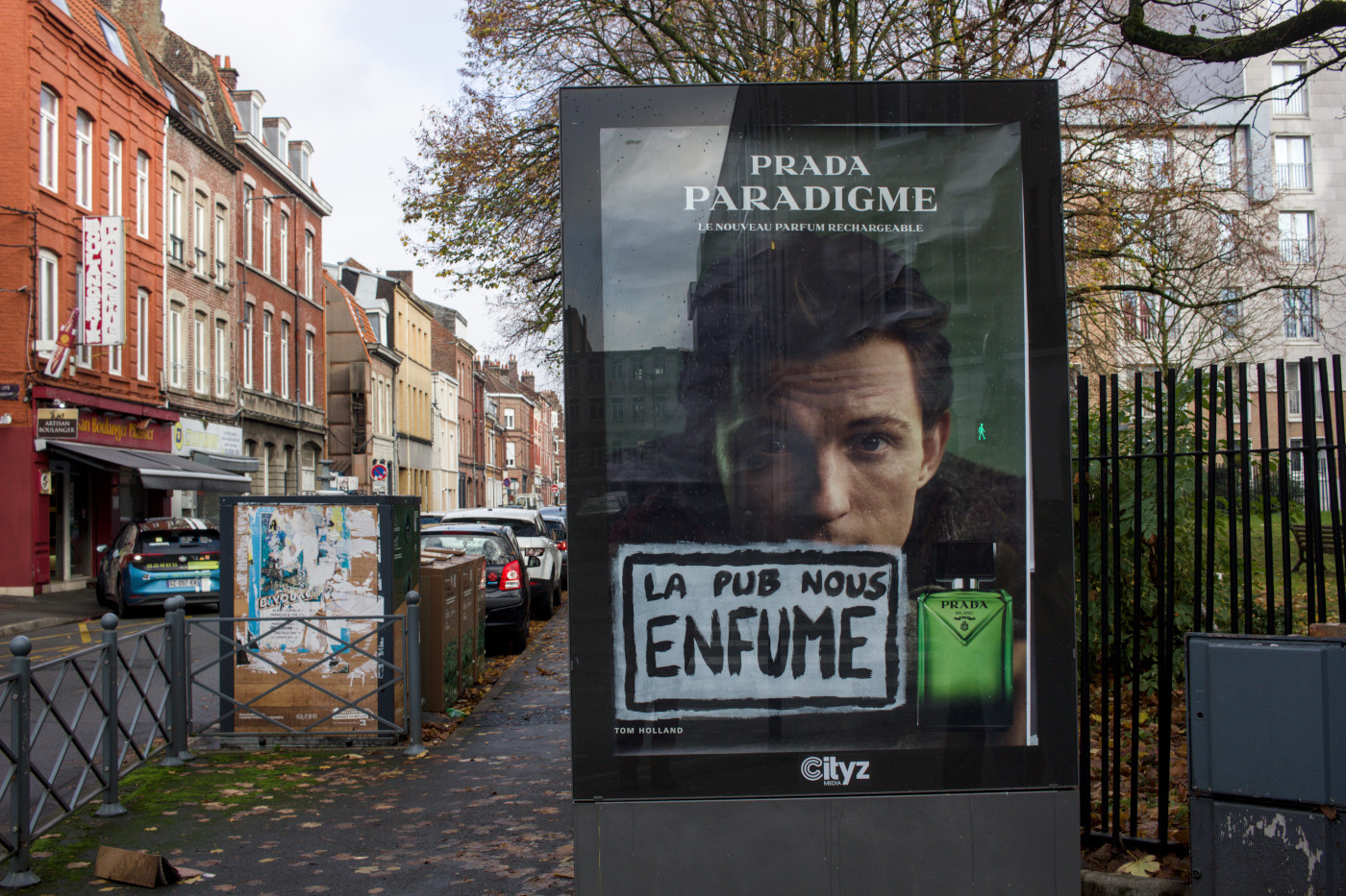We took action on 21st November 2025 in Lille, France, replacing 20 billboards with 4 messages meaning (more or less) “We are fed up of ads / we are sick of advertising / Advertising scams us” with play on words in french.