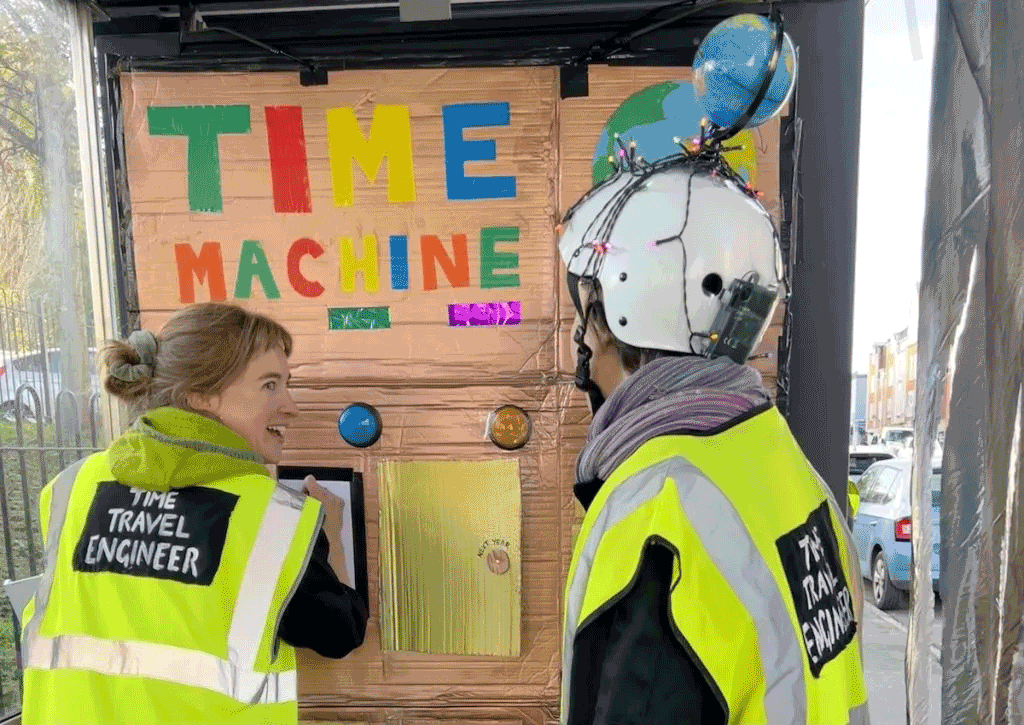 In Bristol, a team of time travel engineers journeyed back to 2025 to repurpose the energy from a digital advertising screen and install a time machine. They said that Black Friday ads are a particularly rich source of energy for time travel, so it was the perfect time and location for their flat-pack, user-friendly time machine to be installed.