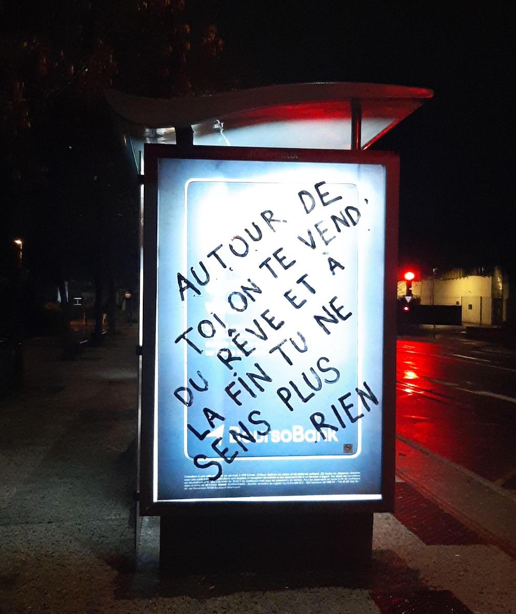 We organized a workshop to repurpose paper advertisements that we had previously collected around the city. Participants altered advertising slogans and added comments to the ads to denounce their encouragement of overconsumption, the promotion of problematic products, and their omnipresence in public spaces.