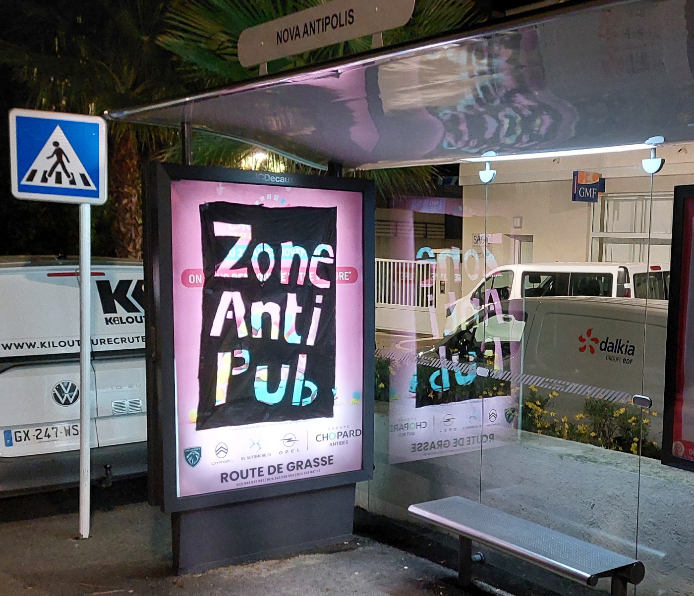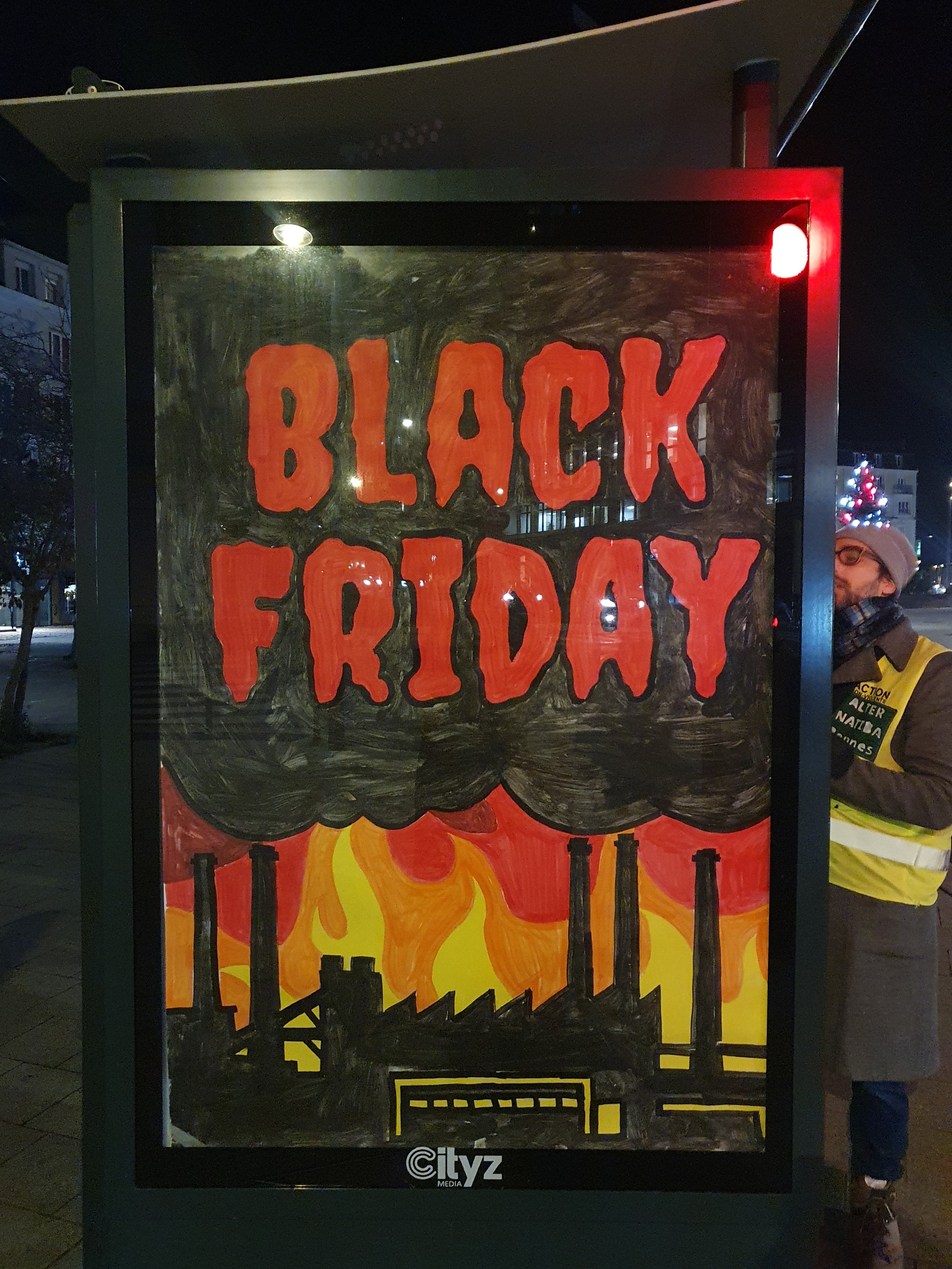 "Soon there will be a tree here...." Anti-advertising activists edit their local billboards in Mulhouse, France as part of the #ZAPGames2025 - 2 weeks of affinity group actions against Black Friday #consumerism. https://subvertisers-international.net/2025/11/soon-ici-bientot-un-arbre-mulhouse-france-zap-games-2025/